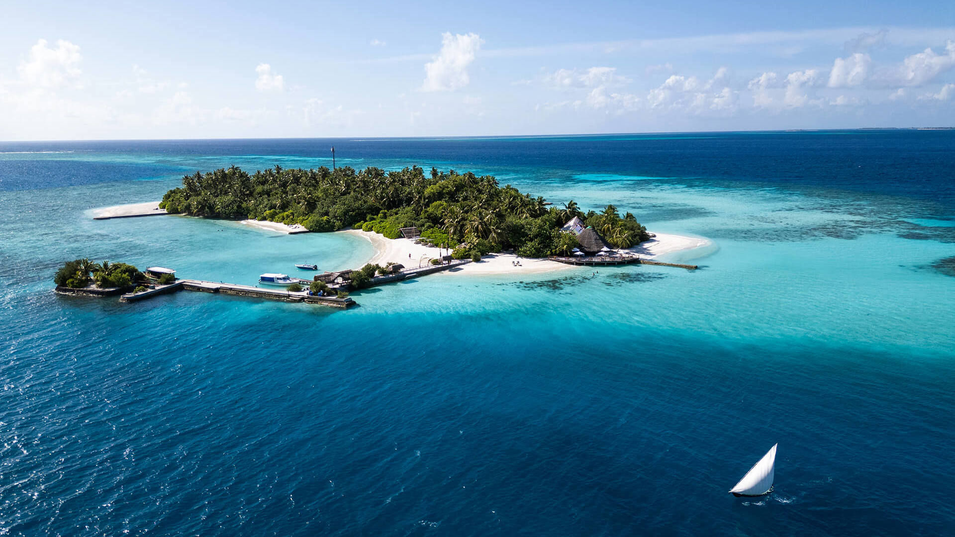 Makunudu Island is the definition of a Maldivian island escape. The resort is set on an idyllic palm fringed island in North Male Atoll, with traditional, thatched bungalows offering comfortable accommodation that blends with the natural beauty of the island. The peaceful and welcoming resort is one of our favourites in the Maldives and is perfect for a quiet, intimate holiday.