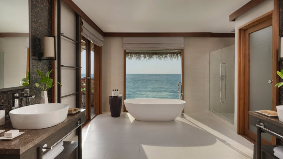 Facilities: Two swimming pools (one is adults only), overwater spa (on Rangali Island) with glass floored treatment rooms, The Spa Retreat (on Rangali-Finolhu), daily fitness and yoga classes, tennis courts, watersports including house reef snorkelling, diving, catamaran sailing, paddle boarding, kayaking, windsurfing, surfing lessons, jet packs, seabobs, jetsurfing, parasailing, knee boarding, wake foil, jet skiing tours, waterskiing, wake boarding, inflatable rides, big game and sunset fishing, manta and whale shark excursions and sunset cruises.